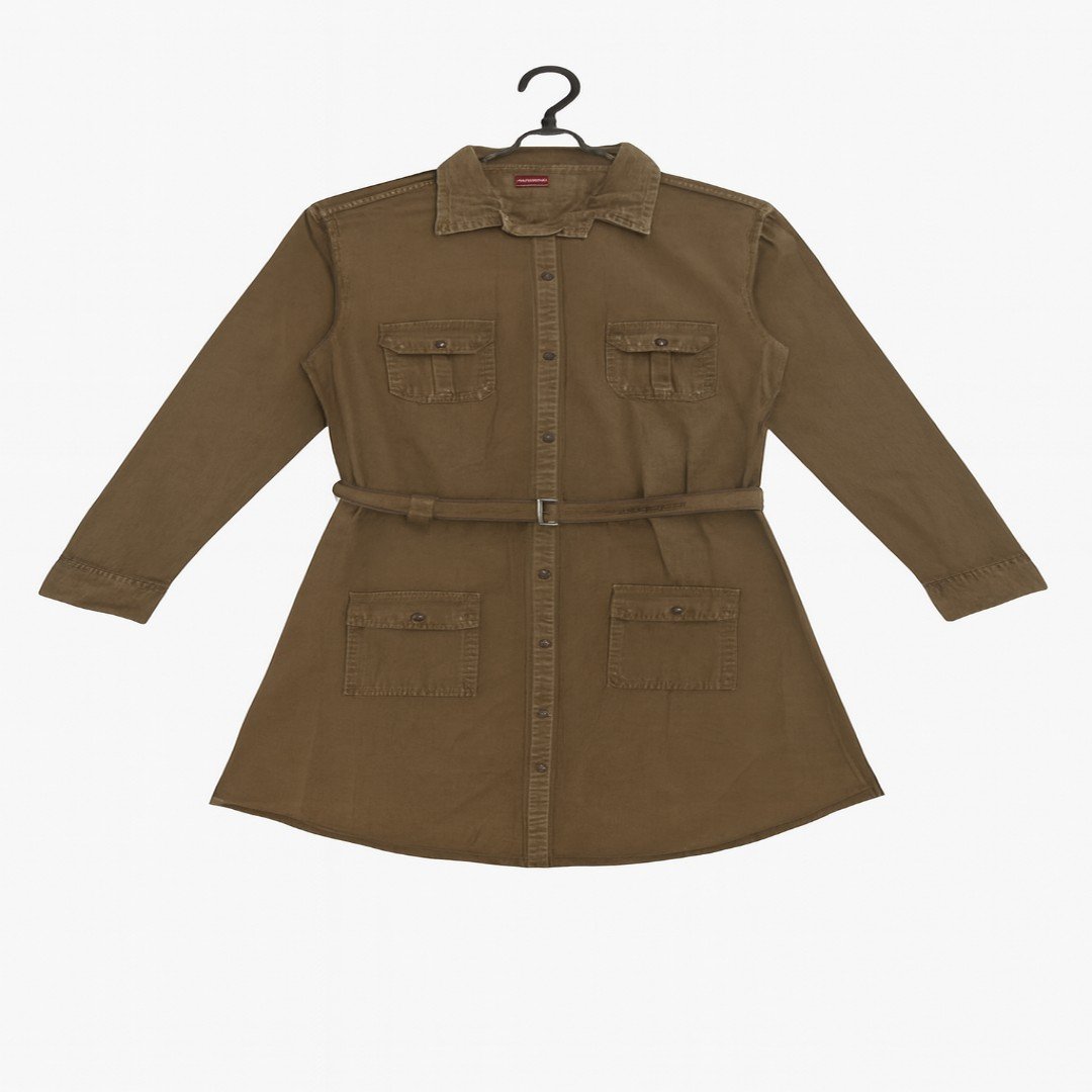 Elevate your everyday wardrobe with the Mustard Belted Utility Shirt Dress—a timeless midi crafted for women who embrace intentional living. Designed in a breathable cotton blend, this dress combines minimalist elegance with functional detailing. The collared neckline and full button-down front create a structured silhouette, while the adjustable waist belt with a sleek metal buckle adds definition and quiet confidence. Four flap pockets—two at the chest and two at the hips—bring a utilitarian edge, blending style with practicality. Its earthy olive tone makes it versatile for both casual outings and polished occasions, ensuring effortless transitions from day to night.